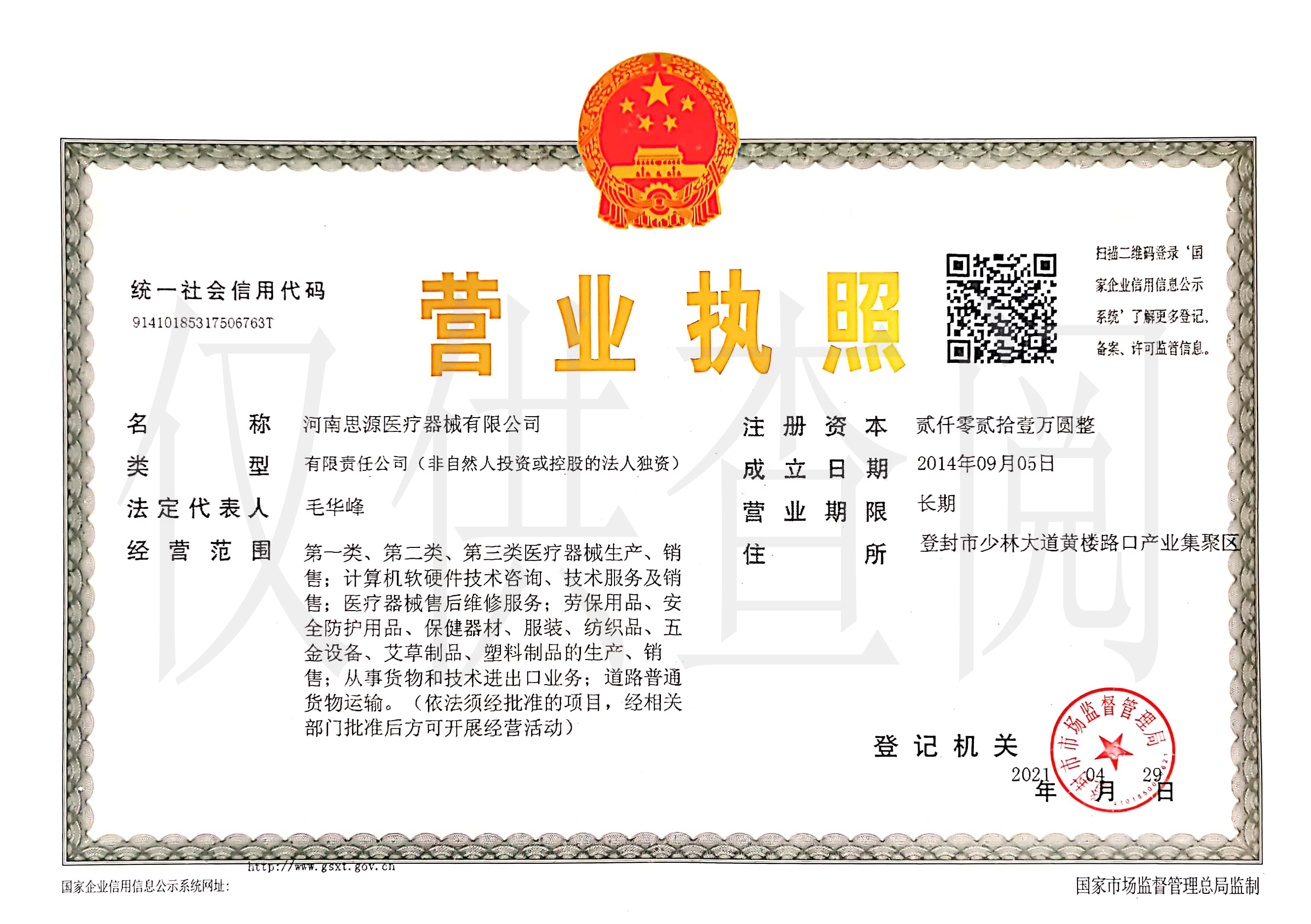 河南思源醫(yī)療器械有限公司成立于2014年11月,注冊(cè)資金2021萬元。公司始終發(fā)心為人,經(jīng)過十幾年的風(fēng)風(fēng)雨雨,不斷成長(zhǎng),成為醫(yī)療器械生產(chǎn)、批發(fā)、零售企業(yè),是河南省醫(yī)療器械商會(huì)會(huì)員和中國(guó)醫(yī)療器械行業(yè)協(xié)會(huì)會(huì)員。